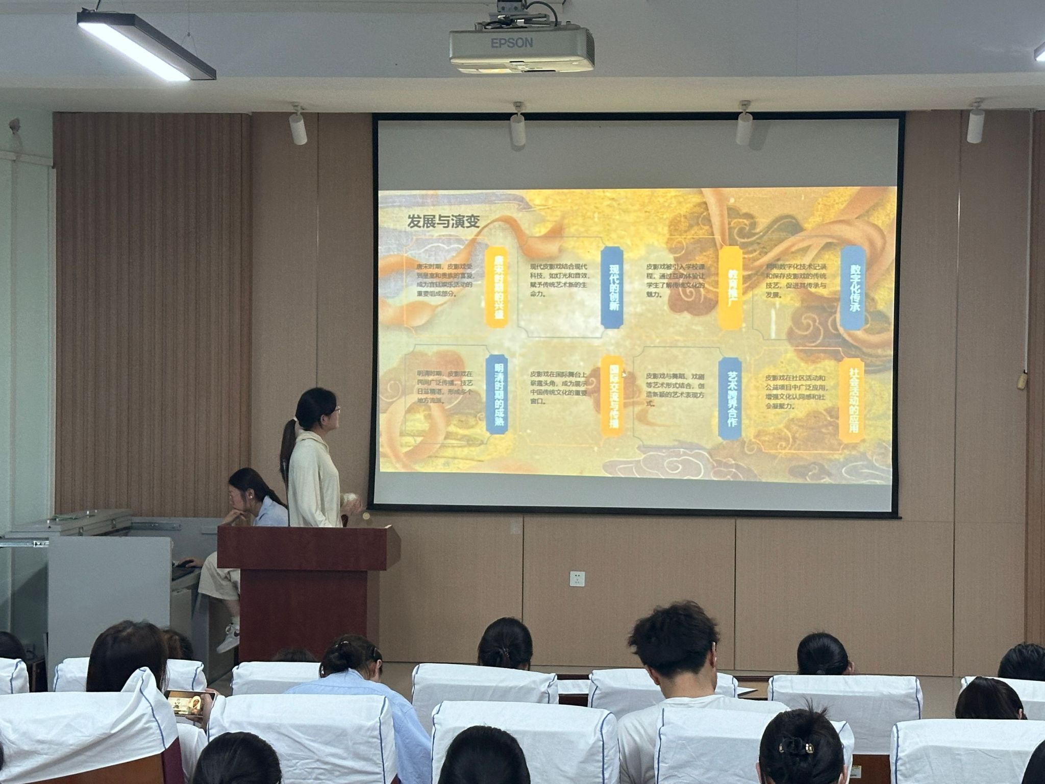 皮影戏作为传统文化的重要组成部分,在很长一段历史时期,在人们的日常生活中产生了重要影响。听了任文宇同学的讲解,同学们对皮影戏的认识更加深刻,表示将积极努力,传承和发扬这一传统艺术。