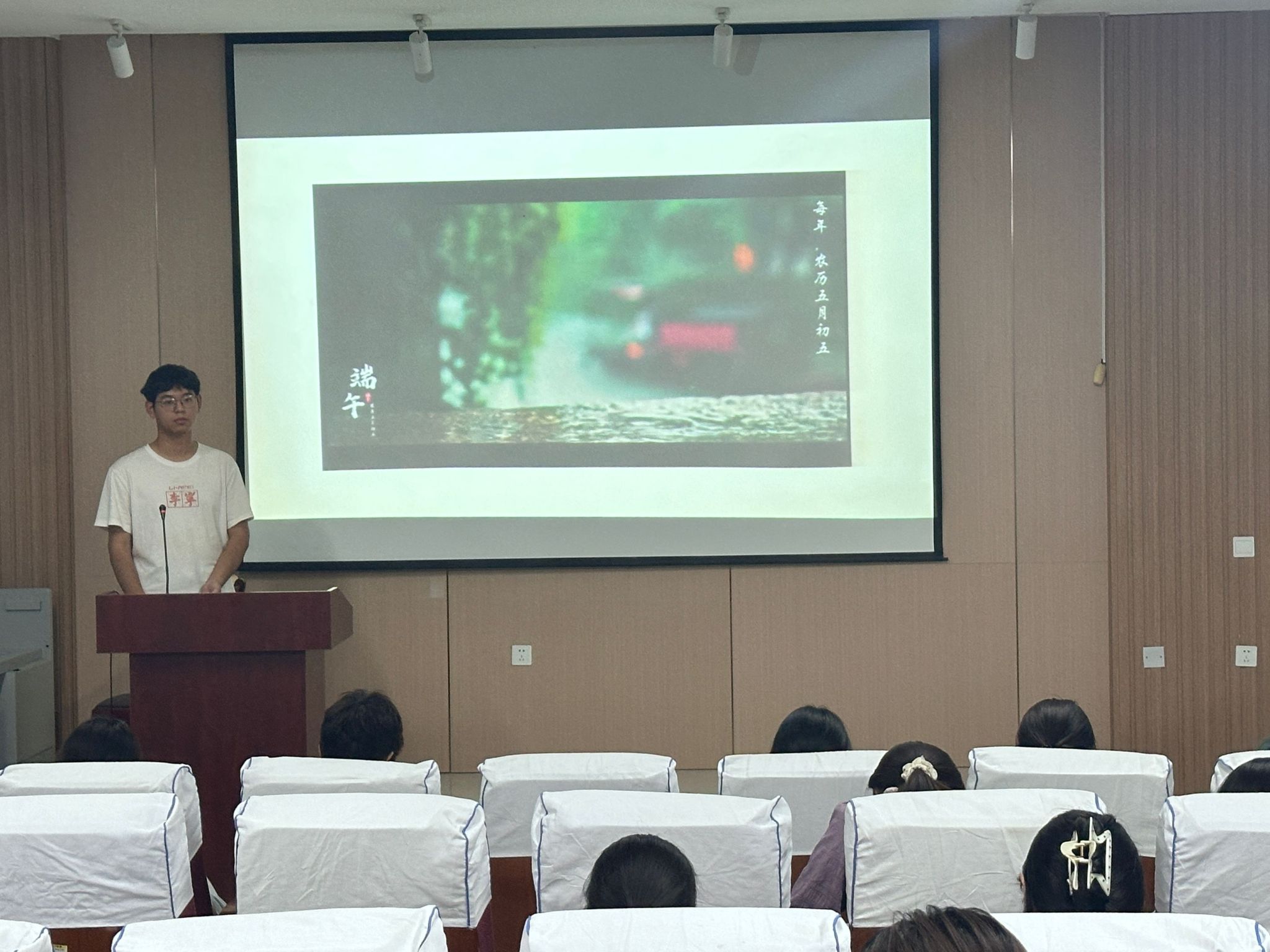 刘兴隆同学指出,端午节不仅是一个传统节日,更是凝聚着先民智慧、承载着家国情怀与伦理道德、体现着文化多样性的宝贵遗产。端午习俗在当代通过科技、教育、产业的创新性转化,展现出强大的生命力和时代价值,为增强文化自信、促进健康生活提供了重要启示。(摄影:朱亚文)