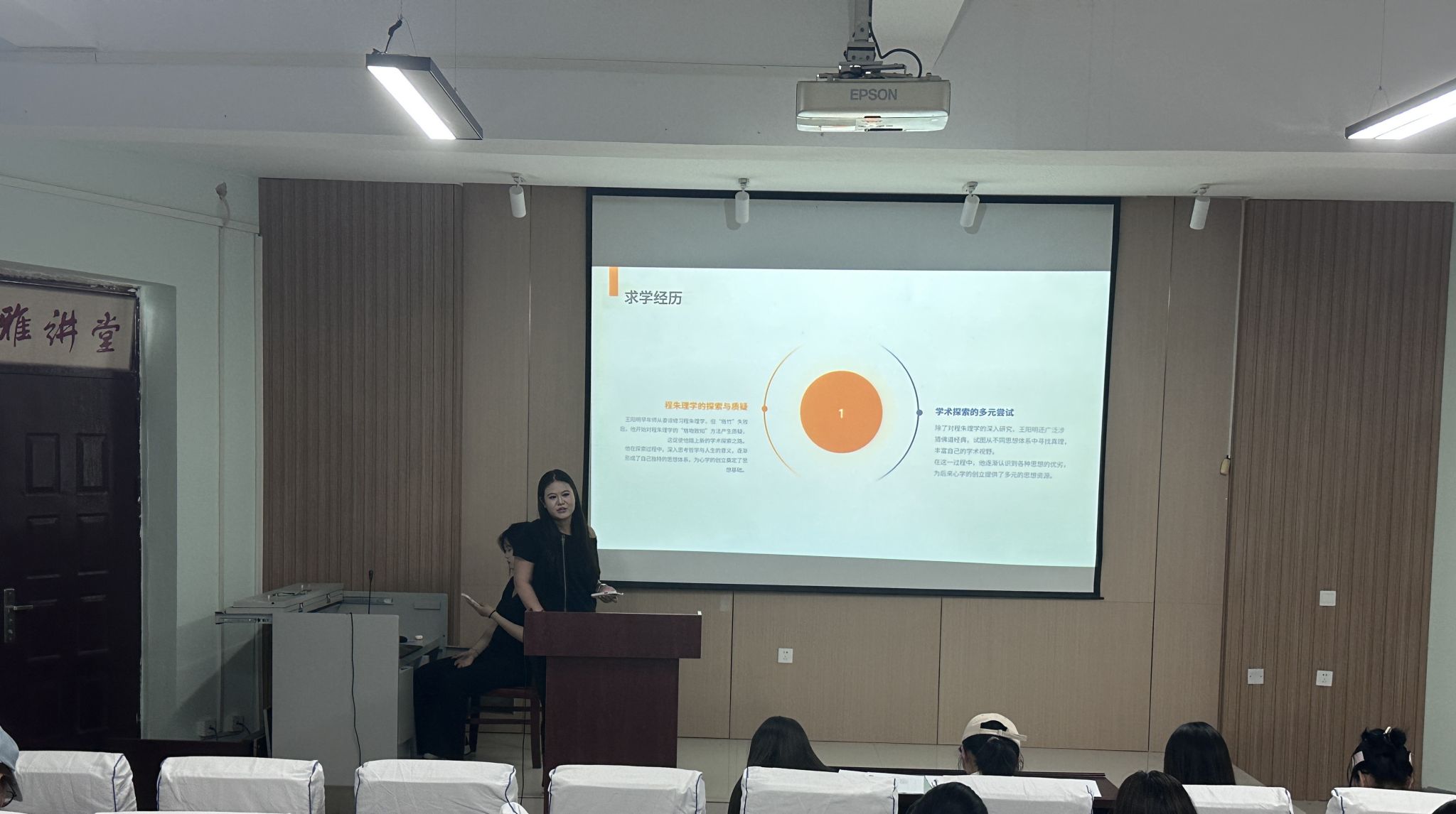 张林齐、刘缘东两位同学从王阳明的成长脉络展开,追溯其家庭熏陶,他自幼浸润于深厚文化底蕴,在严格与宽松并存的家庭教育中,养成独立思考的品格。求学阶段,他历经程朱理学探索、“格竹”质疑及佛道思想交融,最终在龙场悟道中开启心学之路,完成“心即理”的思想蜕变。晚年平定南赣盗乱、宁王之乱的军事政治实践,更展现其“事上磨炼”的实干精神,官至兵部尚书,成就“立功”典范。
