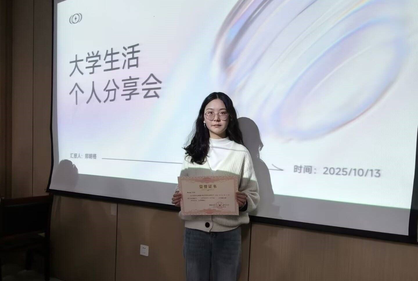 为帮助2025级学生规划大学生活、明确成长方向,10月13日,我书院社区学生郑明格开展了以“大学生活”为主题的个人分享会。她从学业、证书、校园生活、兴趣爱好及成长规划五大维度,与大家一起分享了多姿多彩的大学生活。