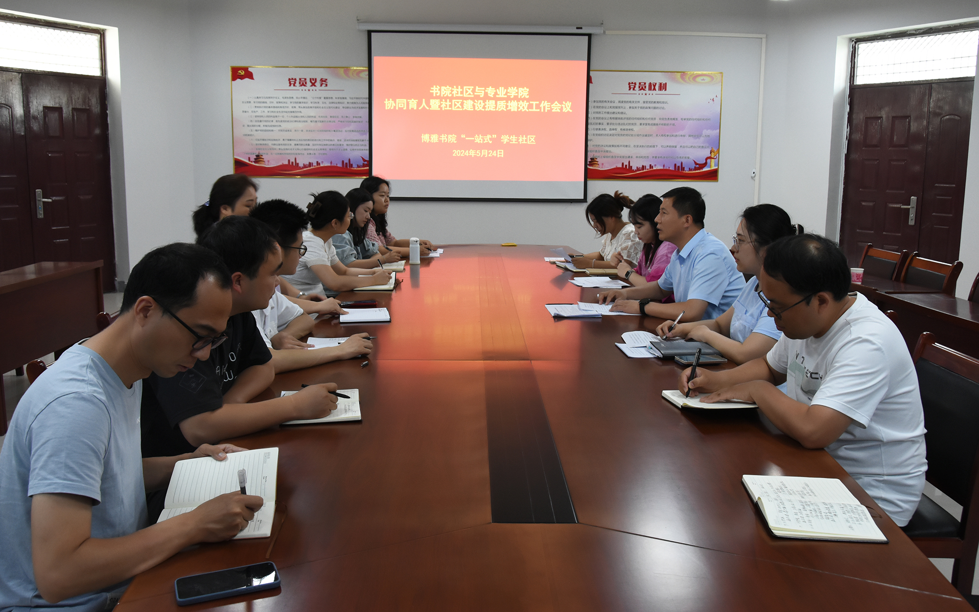 为推进博雅书院“一站式”学生社区综合管理模式建设工作高质量发展,5月24日,我书院社区会同相关学院召开协同育人暨社区建设提质增效工作会。博雅书院社区党委副书记、副院长陶战刚主持会议。