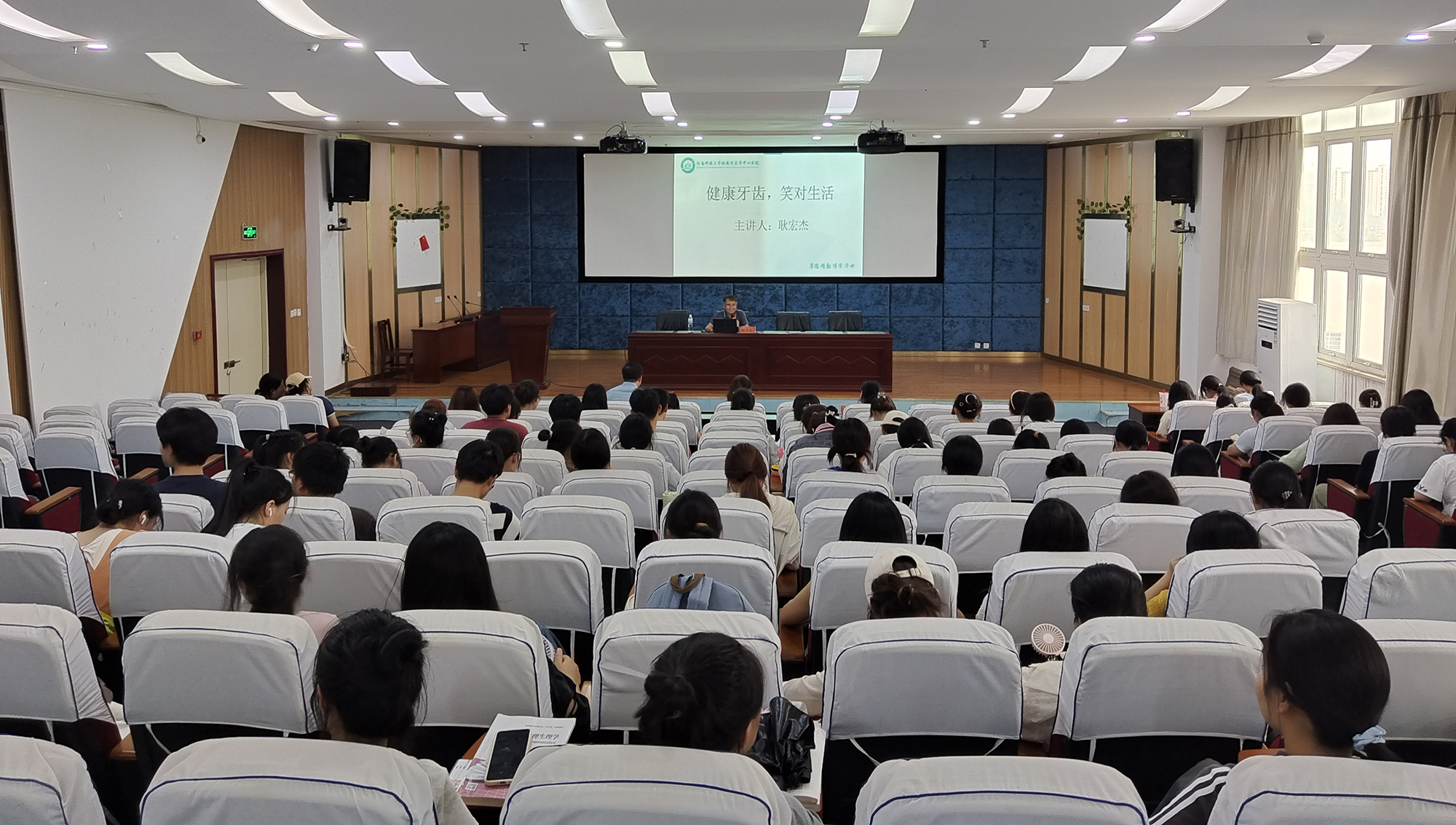 本次口腔健康知识讲座在增强我校教职工生的口腔健康意识、提高口腔健康水平方面具有积极意义。(摄影:韩本高)