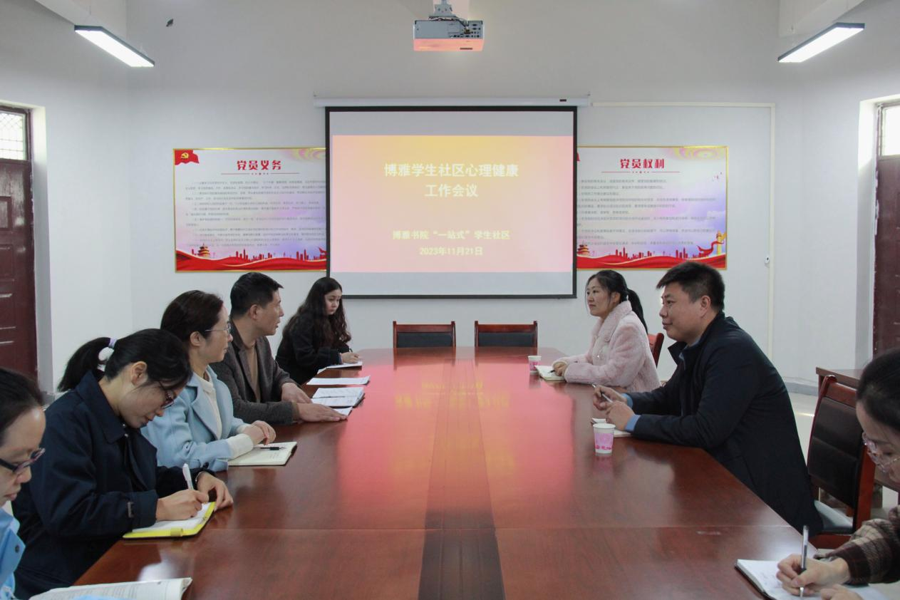 博雅书院党委副书记、副院长陶战刚就社区心理辅导站建设基本情况及已有成效做出简要汇报。结合新生心理健康普查结果,对目前新生辅导员与存在心理问题的新生谈心谈话和整体摸排情况进行汇总,并对社区心理辅导站特定的心理援助服务机制相关方案给与会人员加以普及解读。他指出,心理健康教育是社区育人体系的重要一环,我社区始终重视学生心理健康教育工作,充分发挥心理育人在大学生思政工作中的引领作用。