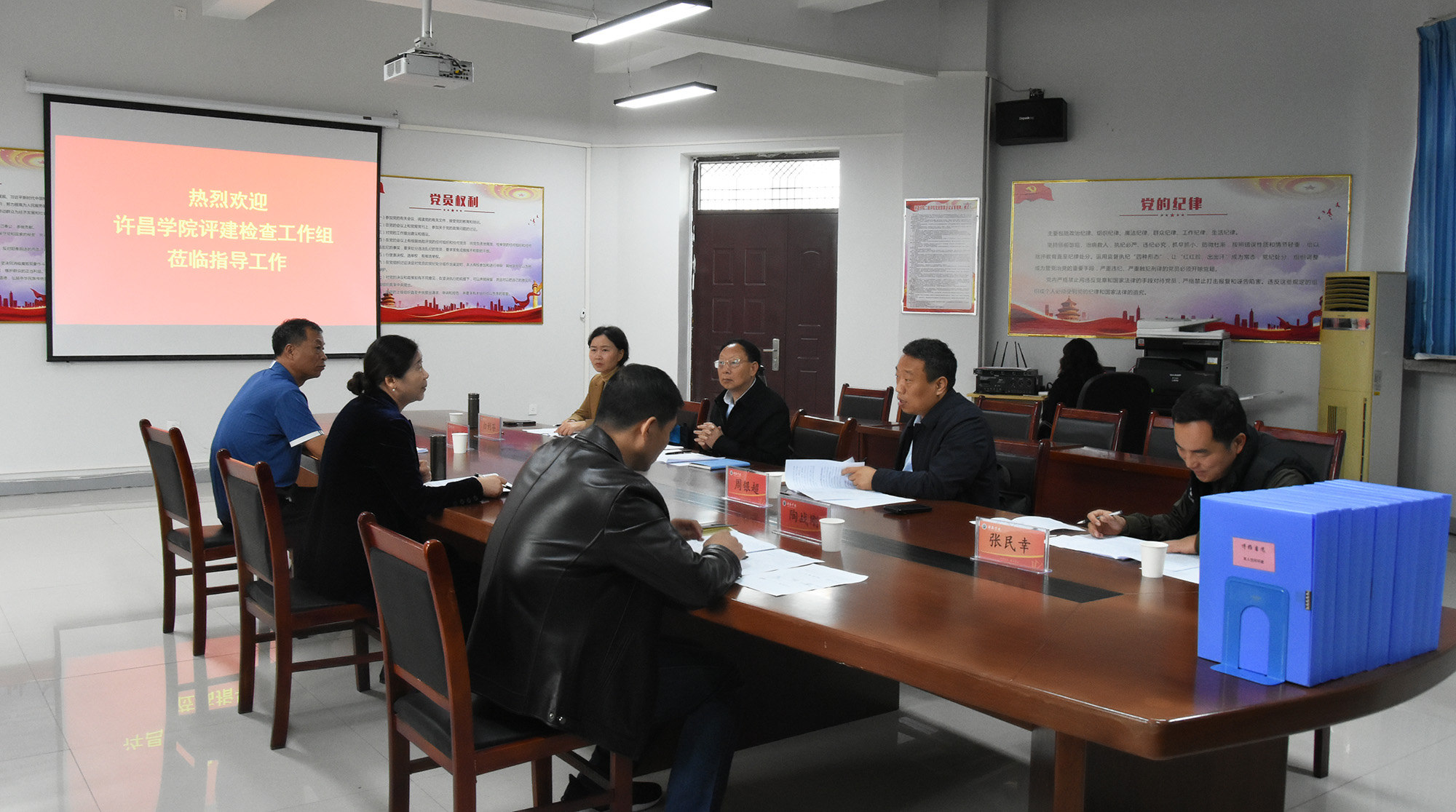 11月14日上午,校第二检查组组长周颖杰(河南城建学院原副校长),副组长周银超(许昌学院学生处处长),专家组成员兼联络员白利芬(许昌学院课程中心副主任)等一行4人莅临我书院社区对本科教育教学审核评估工作进行督导检查。博雅书院党委书记李俊杰,院长王建民,党委副书记、副院长陶战刚出席会议,各科室负责人参加会议。会议由周颖杰主持。